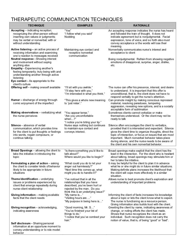 Nursereview Org Therapeutic Communication Techniques