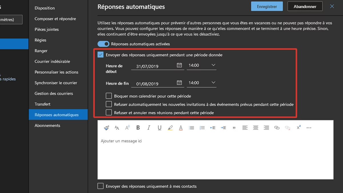 Outlook Creer Un Message D Absence Automatique Sous Outlook