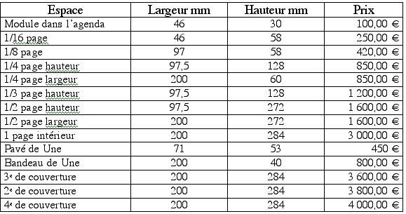 Tarif Des Publicites Journal Ensemble Pour Batir