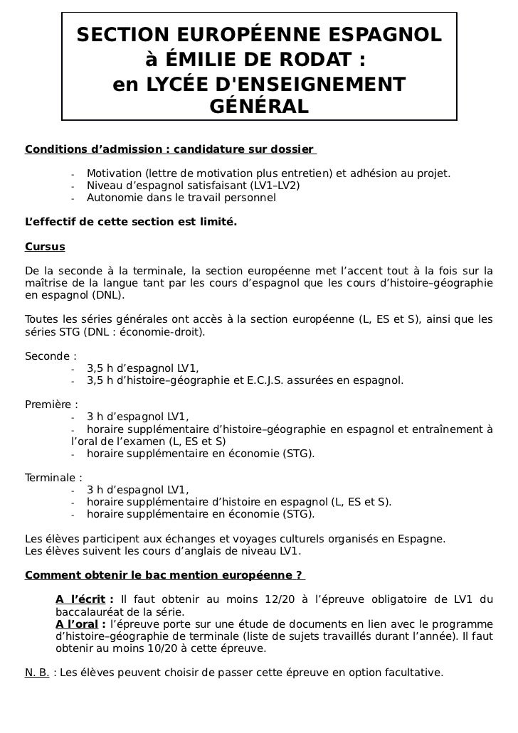 Lettre De Motivation En Anglais Section Euro