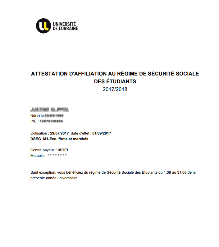 Attestation Scolarite Universite のギャラリー