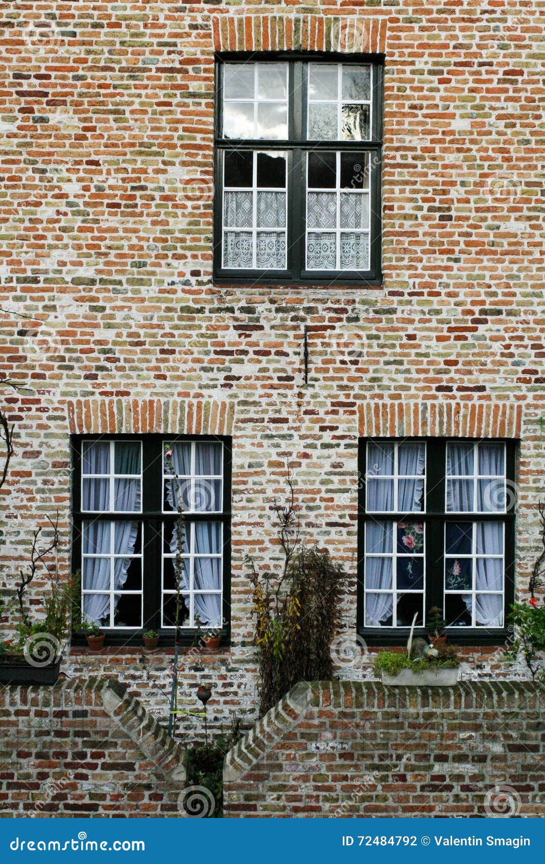 Mur De Maison De Brique Rouge Avec Trois Fenetres Photo Stock Image Du Maison Trois