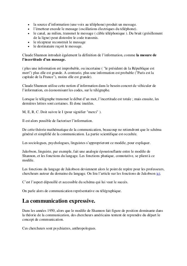 Theorie De La Communication Synthese Schematique Incomplet Studocu
