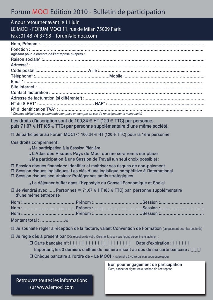 Pour manifester votre intérêt et nous faciliter l’organisation, soyez gentils de bien vouloir répondre par écrit ou par téléphone quelle que soit votre décision Merci d’avance A remettre avant le mercredi 15 Mai A l’attention de Catherine Title BULLETIN REPONSE Author S Last modified by S Created Date. Microsoft Word BULLETIN DE PARTICIPATION Author Agent DS Created Date 1/24/ PM. Bulletin de participation (2 ) Factures, bulletin de participation et RIB (1) Offre réservée à toute société utilisatrice de pneumatiques Poids Lourd ou Génie Civil immatriculée en France métropolitaine, pour tout achat de 4 pneumatiques Poids.