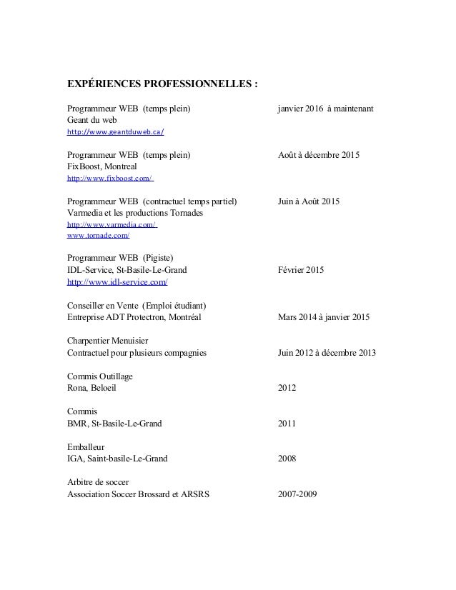 Exemple De Cv Canadien Gratuit A Telecharger Cv Word