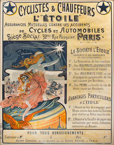 Bonhams Cyclistes Chauffeurs A Fine Advertising Poster For L Etoile Assurances French Circa 1905