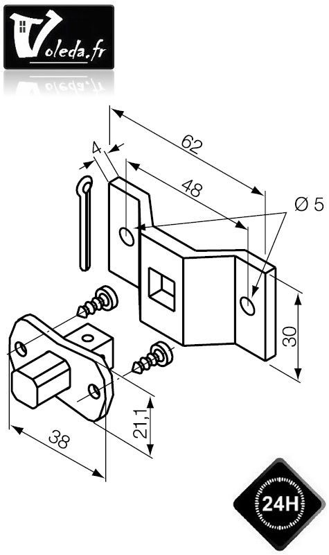 Anneau Carre 7x105mm Pour Moteur Gaposa Avec Manœuvre De Secours