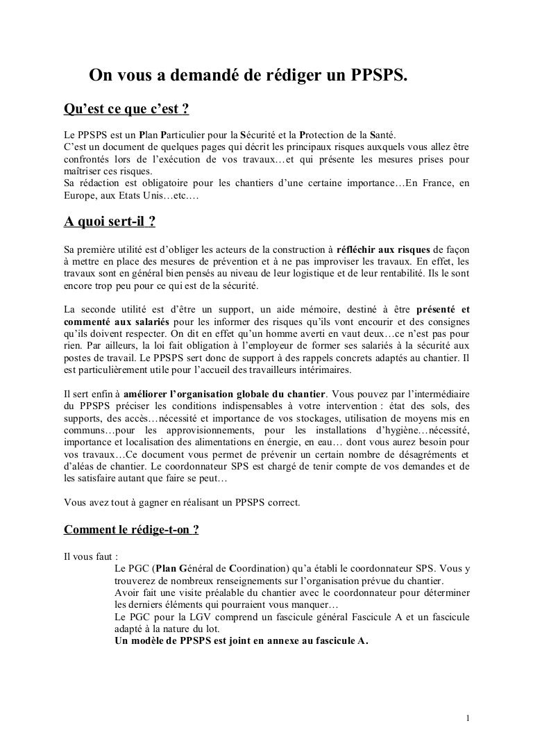 Exemple De Ppsps Plan Particulier De Securite Et De Protection De La Sante Youtube