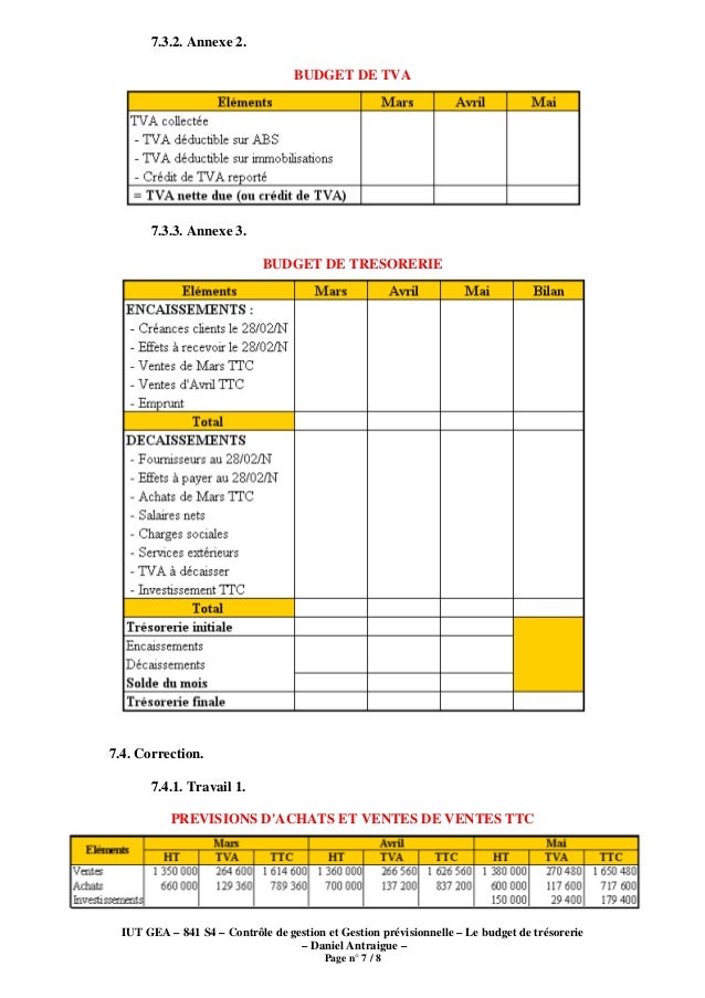 Elaboration D Un Budget De Tresorerie