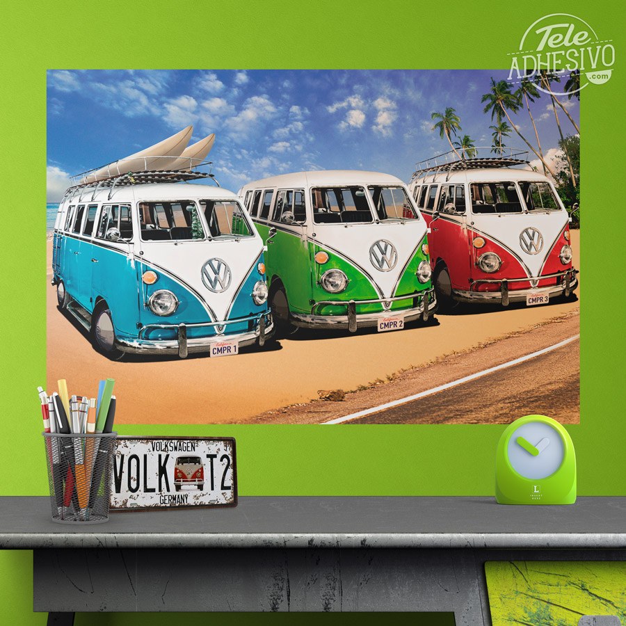 Vinile Poster Adesivo 3 Volkswagen Hippie Vans Stickersmurali Com